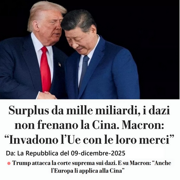 Gli USA mettono i dazi alla Cina? I dazi li paga gli USA per importare merci dalla Cina. Questo perché non è la Cina ad aver bisogno delle merci dagli USA, ma sono gli USA ad aver bisogno delle merci dalla Cina. E questo vale anche per l'Europa.