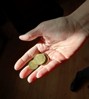 Alzando gli occhi, Gesù vide dei ricchi che gettavano delle offerte nel tesoro. Vide pure una povera vedova che vi gettò due piccole monete e disse: "In verità vi dico: quella povera vedova ha messo più di tutti gli altri; perché tutti gli altri hanno messo, come offerta al dio padrone, parte del superfluo, mentre costei, nella sua miseria, vi ha messo quanto aveva per vivere."