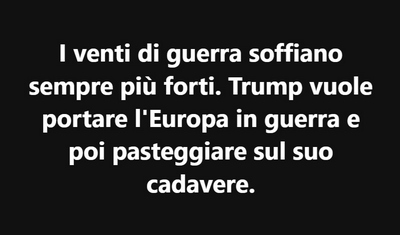 I venti di guerra soffiano sempre più forti. Trump vuole portare l'Europa in guerra e poi pasteggiare sul suo cadavere. L'uomo che voleva il Nobel per la Pace, vive il delirio del Dio onnipotente della bibbia con cui si identifica.